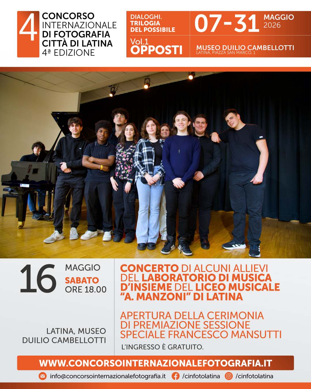 CONCORSO INTERNAZIONALE DI FOTOGRAFIA CITTÀ DI LATINA 4ª Edizione Sabato 16 maggio ore 18.00 MUSEO DUILIO CAMBELLOTTI - Latina